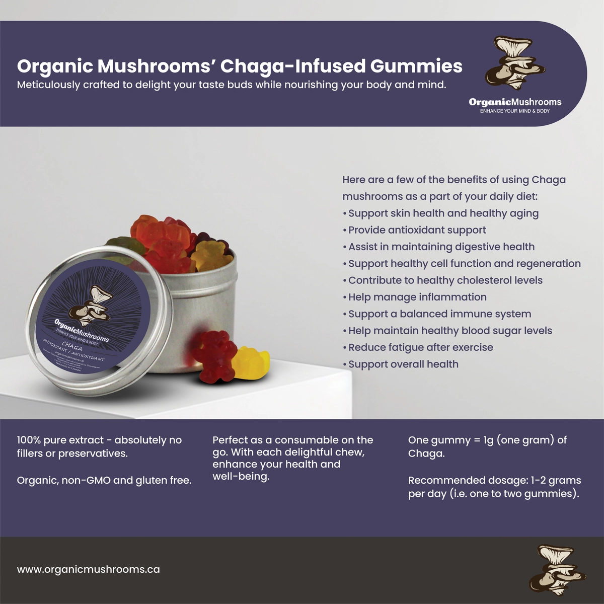 Our Chaga Gummies offer a fun and convenient way to enjoy the benefits of Chaga mushrooms. Crafted with care, these gummies are designed to support your immune health and overall vitality while providing a delicious and indulgent experience.