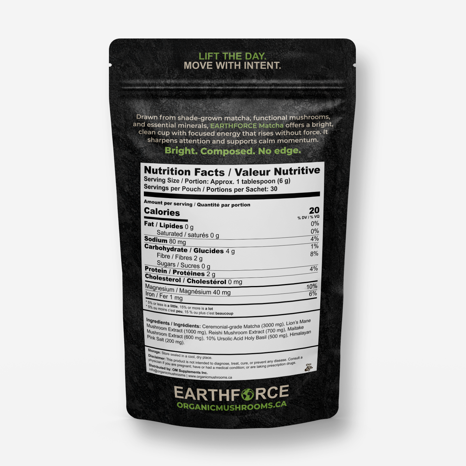 Every ingredient in EARTHFORCE Matcha is carefully sourced, organic, free from fillers, and selected for potency and synergy. Real strength starts with what you put in.