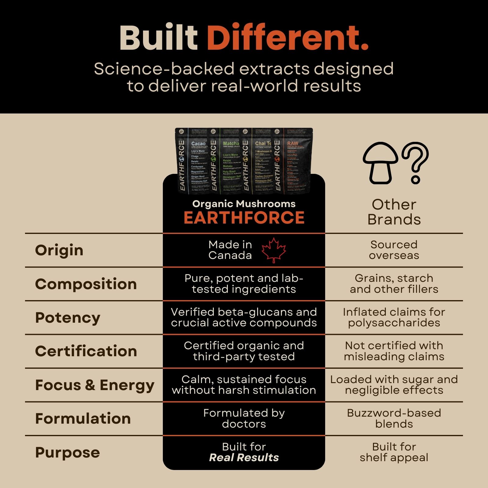EARTHFORCE was born out of this hunger. Forged from the oldest ingredients nature offers: roots that anchor us, minerals carved from rocks, and mushrooms that have whispered their secrets through millennia.