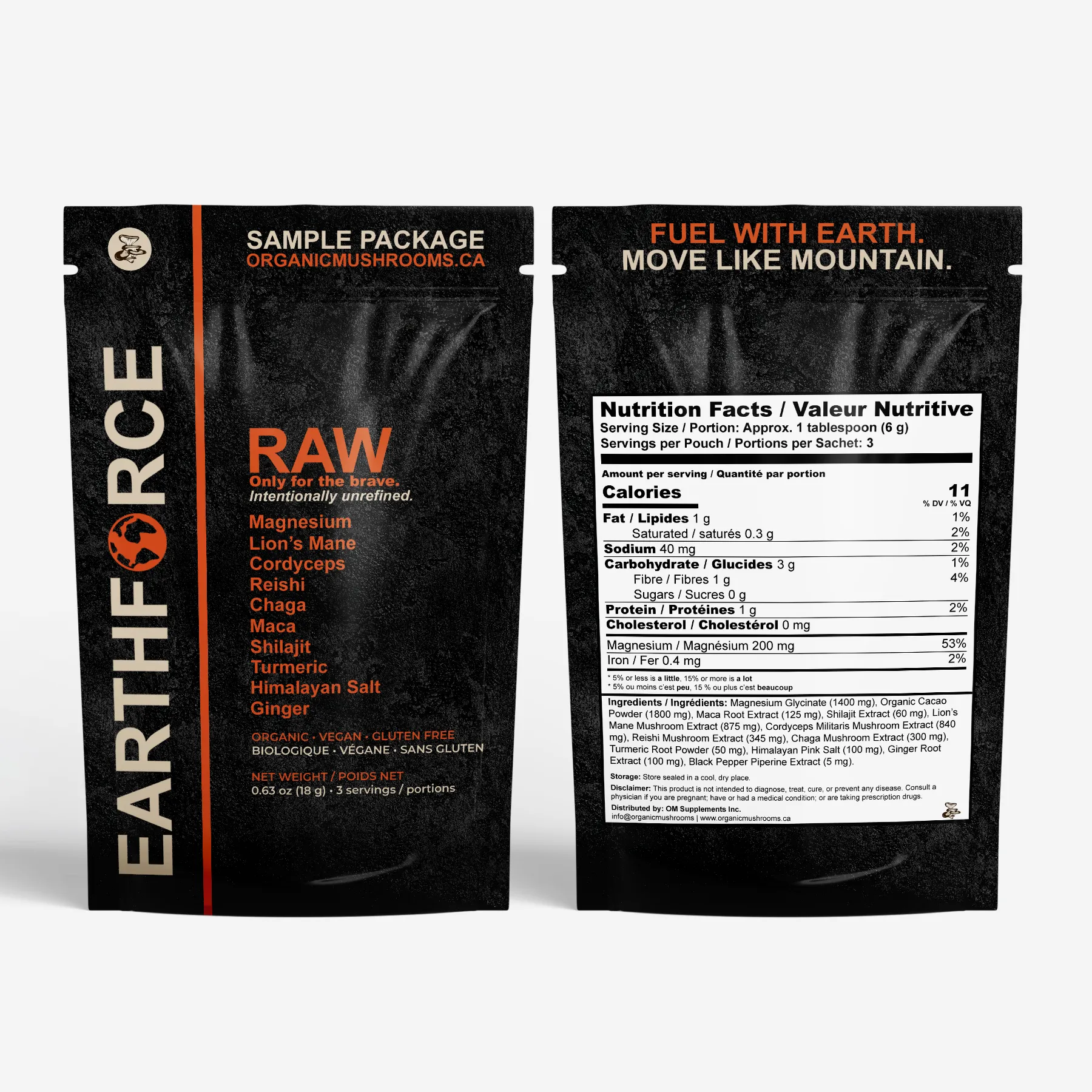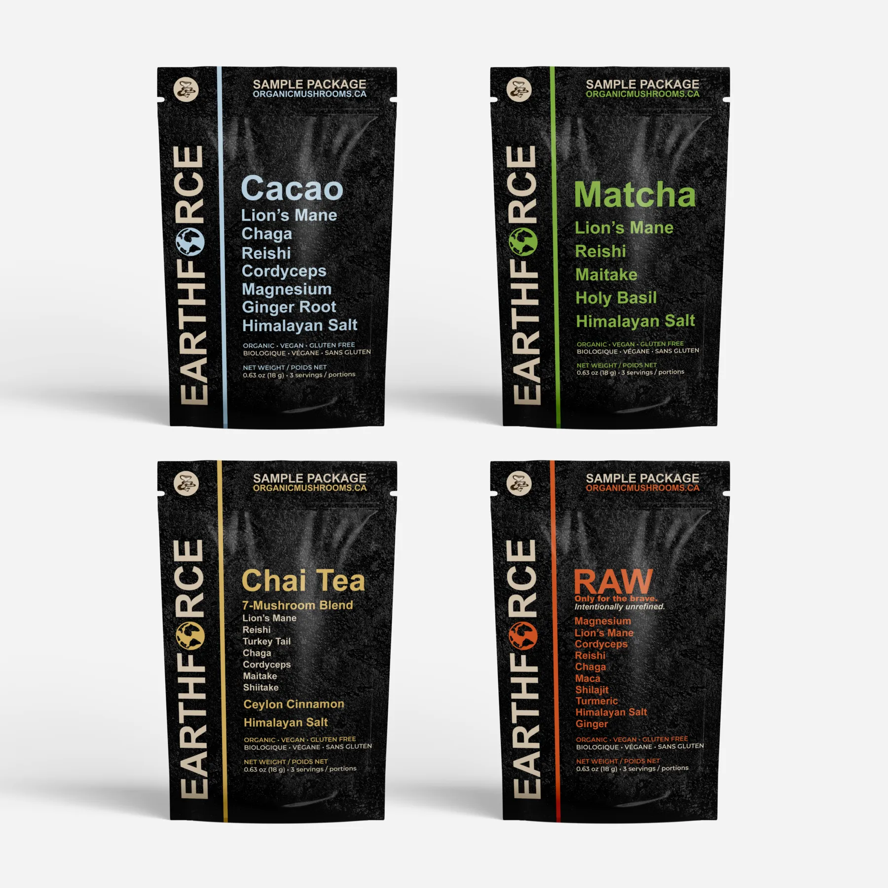 This Sample Pack lets you experience the full lineup before committing to a full size. It includes 3 servings each of every EARTHFORCE blend, so you can explore the different flavours and find the ritual that fits your routine.