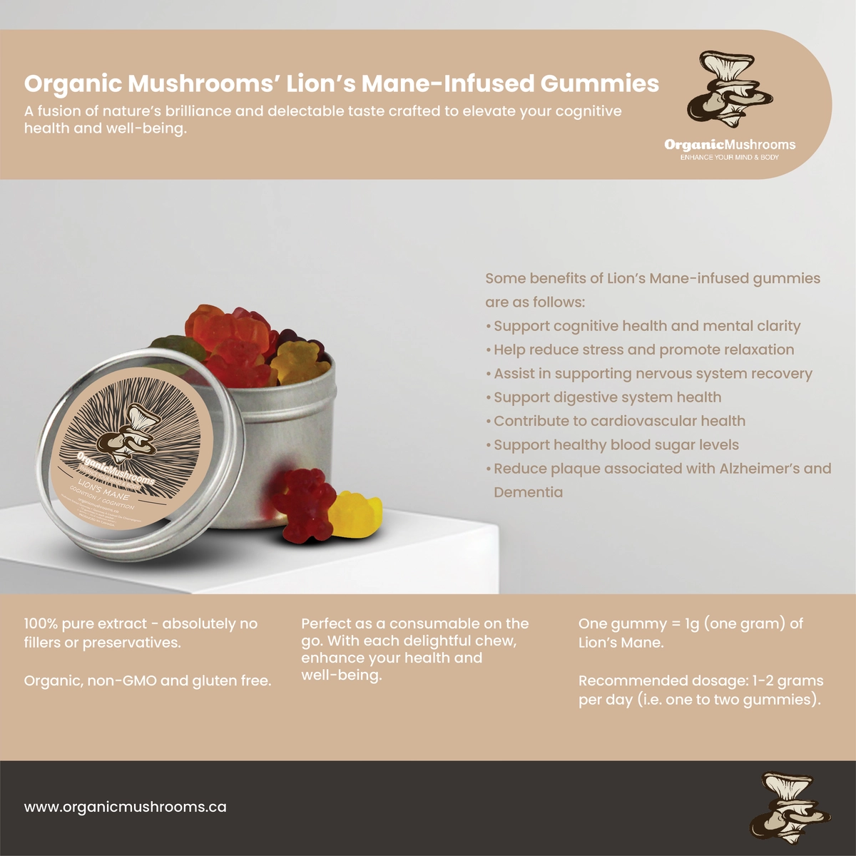 Our Lion’s Mane Gummies offer a convenient and enjoyable way to incorporate Lion’s Mane mushrooms into your daily routine. Among its many benefits, Lion’s Mane is primarily known for its role in supporting cognitive function and brain health.