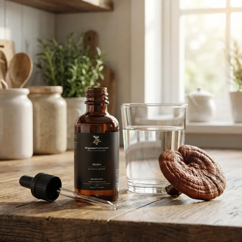 Made from high-quality organic Reishi, our tincture is designed to fit seamlessly into your wellness routine, helping you feel centered and supported throughout your day.
