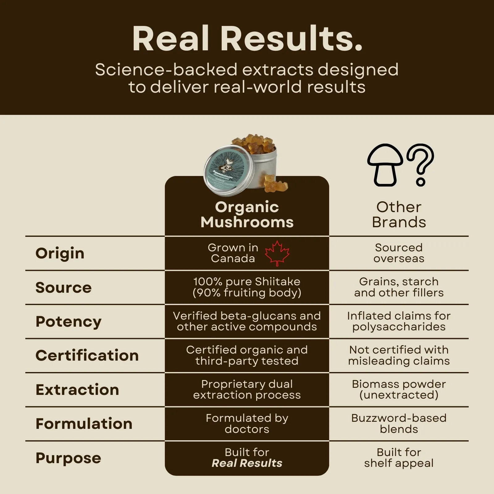 We use a proprietary dual-extraction process, ensuring that our gummies harness the full benefits of Shiitake mushrooms. Whether you want to support your immune health or maintain overall vitality, these gummies are a tasty and convenient addition to your daily routine.