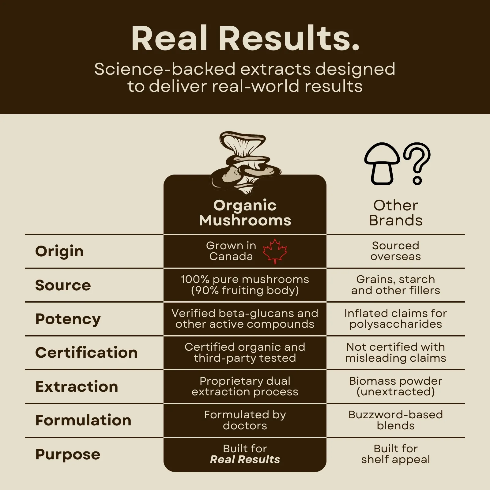 At Organic Mushrooms, strength begins with purity. We grow our own mushrooms, and we do it the right way: clean, organic, and cultivated right here in Canada. No compromises. No fillers. Only quality you can trust.